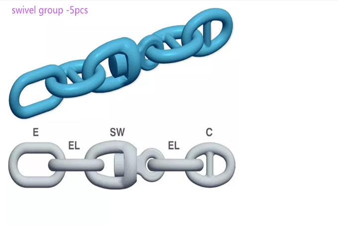 Anchor chain swivel forerunner consists of a swivel, common links and end link. It is applicable to grade2 and grade3 anchor chains.
