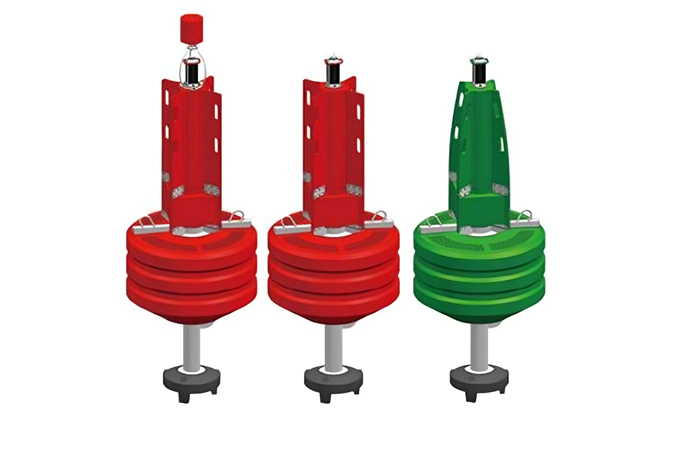 This floating marker buoy is supported by a skeleton core, with a bob weight used to fix the vertical position of the buoy at the bottom. The float component provides buoyancy for the whole buoy. All these features allow the buoy to perform its navigation and identification functions in the ocean stably.