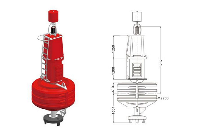 This is a 2.2m diameter lighthouse buoy for marine affairs. Our buoys are all polyethylene, which is quite durable in the high strength and high press sea environment. We offer highly customized services for every customer’s specific needs. If you want to know more information about our buoys, please feel free to contact us.