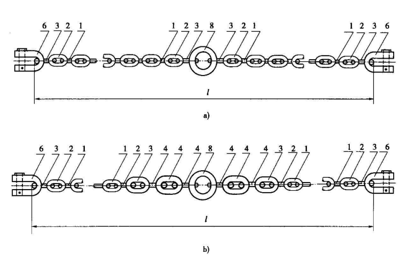 The marking of the chain link consists of four parts, namely the link material grade, the link or accessory code, the chain link diameter and the standard code.