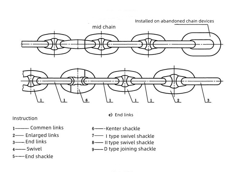b, Type II swivel shackle - directly connected to the anchor shackle, can also be connected to the anchor rod of the swivel shackle.